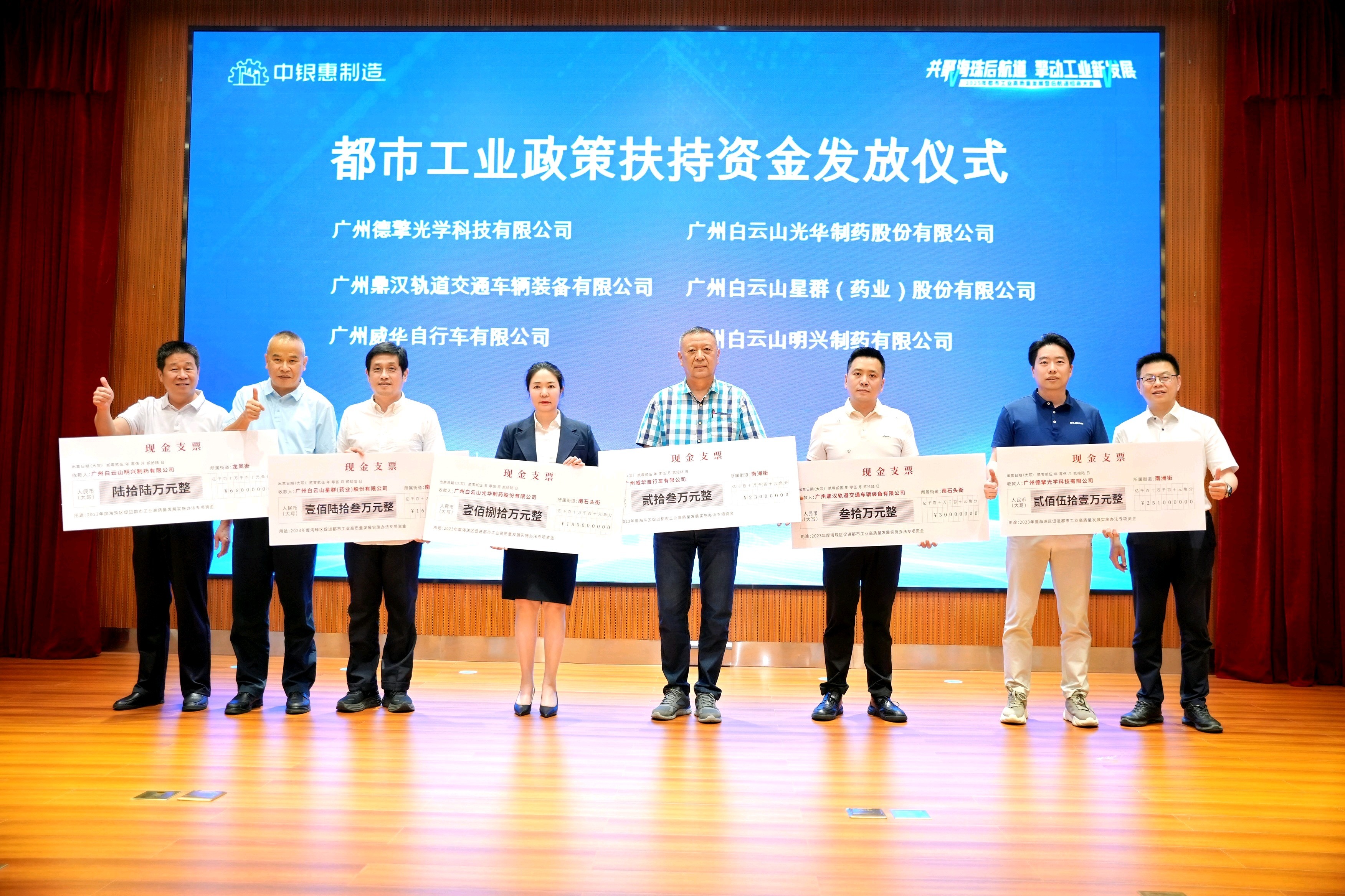 本次行动还举办了皆市工业政策扶抓资金披发典礼,真金白银竣事超2300万元的皆市工业“大礼包”,德擎光学、鼎汉交通、威华自行车、光华制药、星群药业、明兴制药6家后航谈企业行为代表上台领奖。