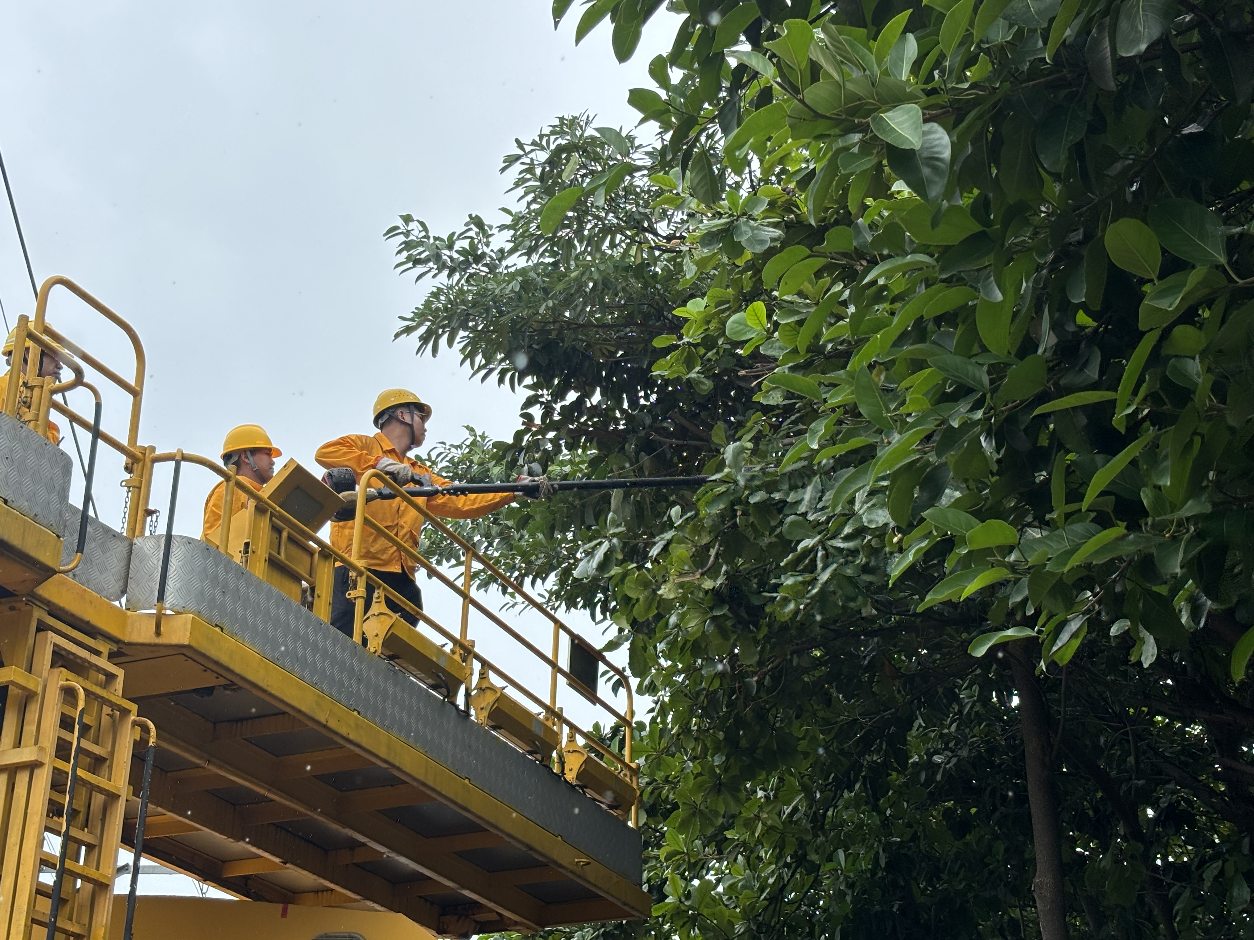 9月24日,国铁南宁局玉林工务段湛江概念车间员工在台风莅临前捣毁湛江线沿线危树。(受访者供图)
